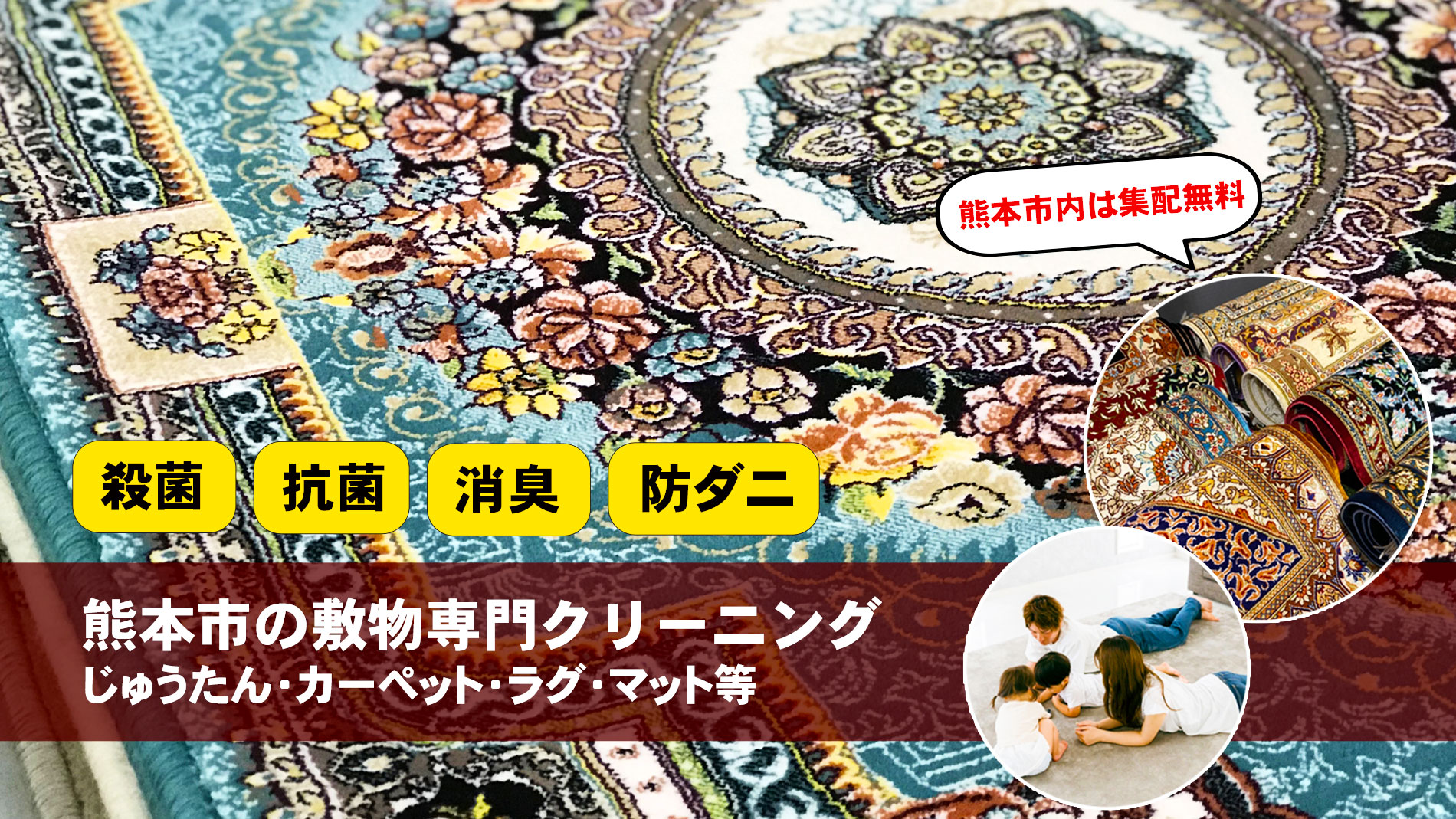熊本県熊本市で敷物(じゅうたん・カーペット・ラグ・マット)専門のクリーニング店!殺菌・抗菌・消臭・防ダニの加工!熊本市内や近郊の多くのお客様にご利用いただいております。熊本市近郊は、無料で集配させていただいております。ペルシャ・中国緞通・パキスタン・ギャベ・キリム、こだわりの高級絨毯も最高の技術で一点ずつ手洗いいたします。